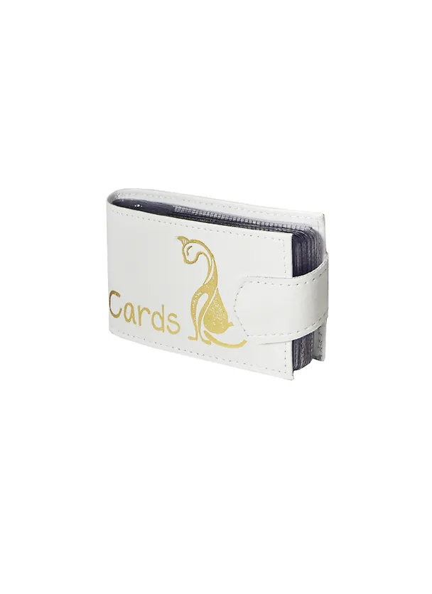 Кредитница 18 карточек натуральная кожа, белая, золотое тиснение Кошка, тип 2, Спейс