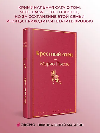 «Крестный отец» давно стал культовой книгой. Пьюзо увлекательно и достоверно описал жизнь одного из могущественных преступных синдикатов Америки — мафиозного клана дона Корлеоне, дав читателю редкую возможность без риска для жизни заглянуть в святая святых мафии.