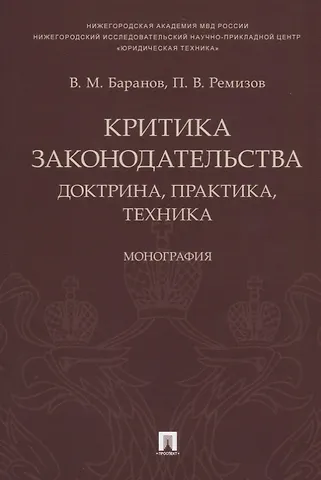 Критика законодательства: доктрина, практика, техника.Монография.-М.:Проспект,2018.