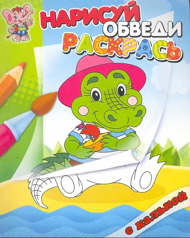 Крокодил. Раскраска с калькой. Нарисуй обведираскрась
