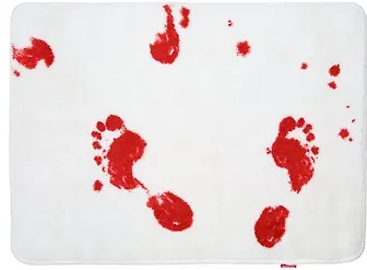 Это фактически недостающая деталь, с которой вы сможете собрать душетрепещущую комбинацию для своей ванной комнаты. Коврик идеально сочетается с кровавой шторой для ванны! Он фрагментарно выкрашен специальной несмываемой красной краской, имитирующей следы свежей крови.