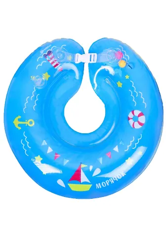 Комфортное использование: надувной эластичный обод предупреждает давление на шею ребёнка, мягкая вставка для подбородка поддерживает головку над водой, а в местах соприкосновения с кожей круг обработан по технологии «внутреннего шва» (гладкий материал не натирает нежную кожу ребёнка).