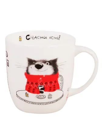 Кружка 380 мл. Кот Матис «Счастье есть!» в подарочной коробке КРС-1263/1