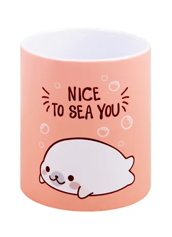Реально классная кружка, не знаю как это работает, но из неё пить вкуснее. Цвет менее яркий, чем на фото, я бы даже сказала, что она не розовая, а бледно-персиковая, но тюлень красивый, прям как на картинке. Чашка не слишком толстая и не слишком тонкая, поэтому она достаточно лёгкая и крепкая. Обычно у других моих чашек появляются сколы или небольшие трещенки через месяц-другой, но с этой кружкой такого нет. Заказала такую с Булгаковым и Толстым.