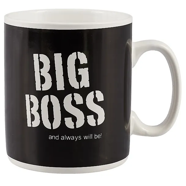 Шикарная кружка! Огромная и стильная! Надпись вообще огонь. А объем просто восторг, наконец-то напиваюсь без дополнительных нескольких порций чая или кофе. Очень удобно сразу заварить и хватает на подольше пить чай за книгой, или особенно кофе утром. Неудобно конечно,что слишком тяжелая, но по-крайней мере качественная. И кто бы, что не говорил, а мне нравится цвет и оформление, действительно чувствуешь себя боссом. Хотя бы дома.
