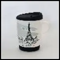 Кружка керамическая с силиконовой крышкой и подставкой в комплекте (28316) (295 мл)