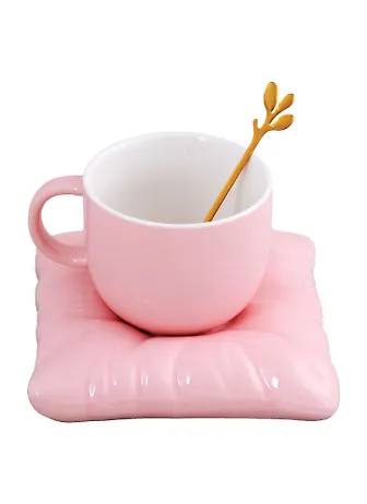 Кружечка с блюдцем нежно-розового цвета, самое то, для нежной обладательницы этого набора .На самом деле выглядит все намного достойнее, чем на фотографии. Очень хорошего качества.