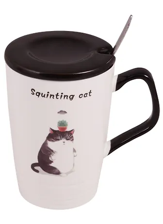 Кружка с крышкой и ложкой Кот Эмоции 330мл (керамика) 12-16509-CC92-1