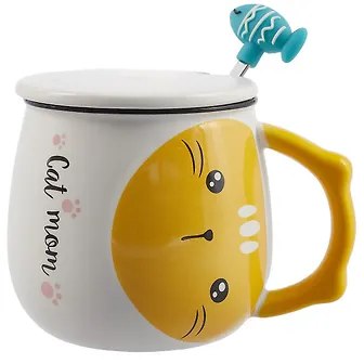 Кружка с крышкой и ложкой "Котик и рыбка".