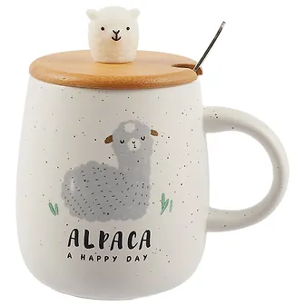 Кружка с крышкой и ложкой Лама (керамика) (350 мл) (CY-8138-2)