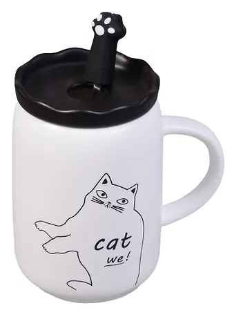 Кружка с крышкой и ложкой-лапкой Cat (керамика) (350мл)