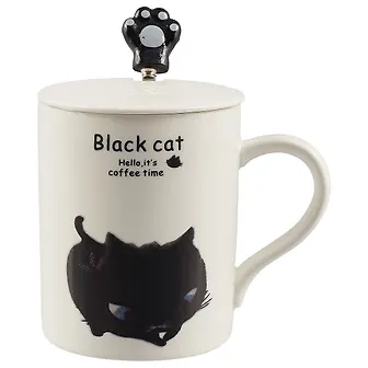 Кружка с крышкой и ложкой-лапкой Черный кот (керамика) (300 мл) (12-07160-347-1)