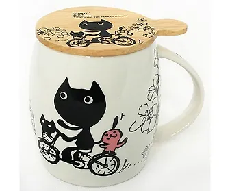 Кружка с крышкой Кошка на велосипеде (SN001)