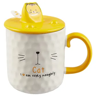 Кружка с крышкой-подставкой для телефона Кошачья мордочка (керамика) (350мл) (12-07057-SJ1272-