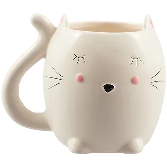 Кружка с ушками Мордочка котика с закрытыми глазками (белая) (керамика) (350 мл) (12-07132-20190519)