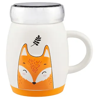 Улыбающаяся рыжая лисичка очень хочет с вами подружиться. Мы думаем, что она будет рада составить вам компанию за чашечкой чая или кофе. Керамические стенки и плотная крышка не дадут напитку быстро остыть. А ещё эта кружка очень милая! А зеркальная крышка поможет вам избавиться от «усиков» от напитка, если они у вас появятся.