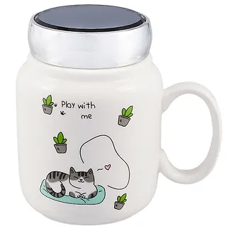Кстати, сверху есть небольшое зеркало, так что вы точно сможете заметить «усики» от напитка, если они останутся. На кружке нарисован забавный котик, который будет каждый день дарить вам улыбку.