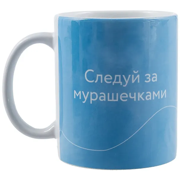 Очень милая кружка с чудесной надписью. Цвет нежно-голубой, приятный для глаза, дарит чувство спокойствия и умиротворения. Надпись жизнеутверждающая. Сама керамика достаточно толстая, а значит быстро не треснет, и кружка долго прослужит. Тепло держит долго, пить из неё удобно, ручка большая, лично у меня влезают все пальцы, держать удобно.
