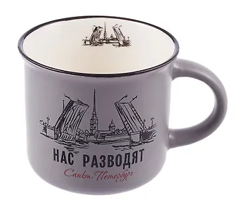 Кружка фарфор матовая 180мл СПб.Мосты, нас разводят, серая