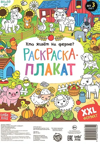 Раскраска-гигант «Кто живёт на ферме?» — отличный вариант для тех родителей, которые привыкли окружать своего малыша только лучшими и качественными вещами. За такой книжкой ваш ребёнок проведёт время с пользой и удовольствием, узнает много нового и интересного.