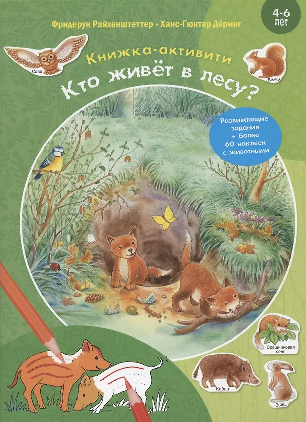 Кто живёт в лесу? Развивающие задания + более 60 наклеек с животными. 4-6 лет