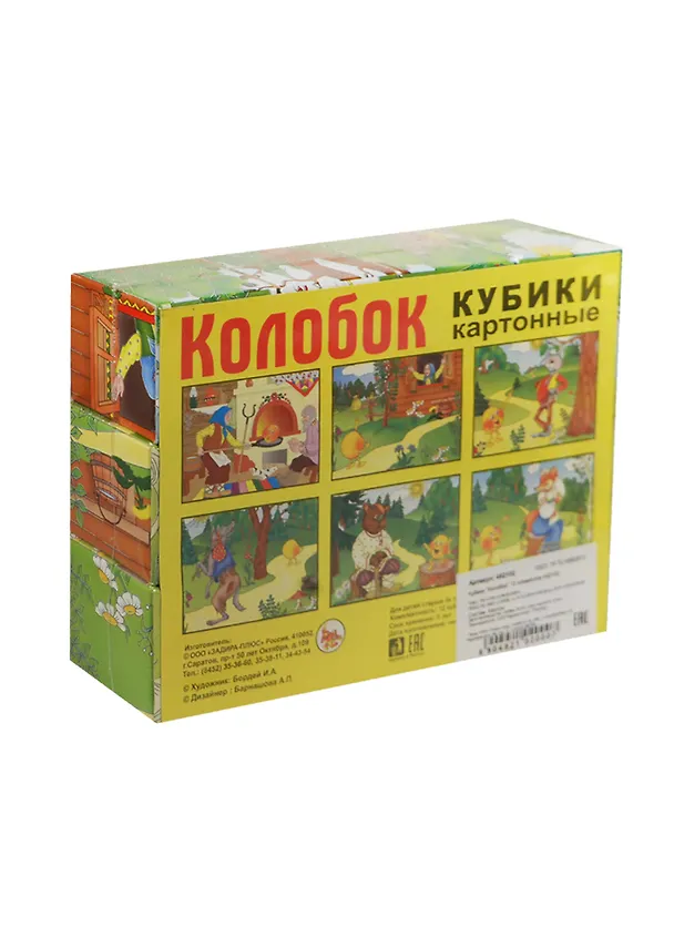 Кубики Колобок (492102) (12 элементов) (картон) (3+) (упаковка)