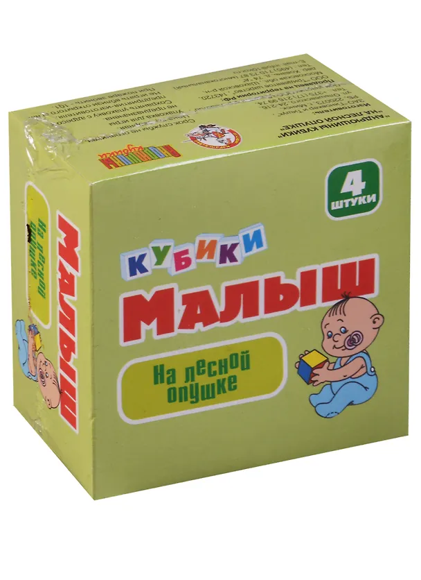 Набор пластмассовых кубиков с картинками серии Малыш «На лесной опушке» состоит всего из четырех элементов и они идеально подходят для детей в возрасте от 3 лет. Мы постарались сделать их максимально безопасными. Это, прежде всего, небольшой вес около 10 грамм, размер граней 4 сантиметра более удобен для маленьких ручек. Картинки лесных животных на кубиках выполнены прямой печатью, что исключило использование специальных наклеек и клея, значительно увеличился срок службы, а картинки стали более яркими и сочными.