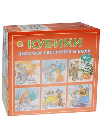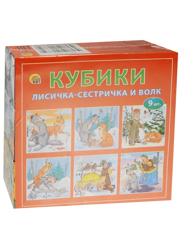 Кубики пластиковые Лисичка-сестричка и волк (И-1375) (9 шт.) (Рыжий кот) (0+) (упаковка)