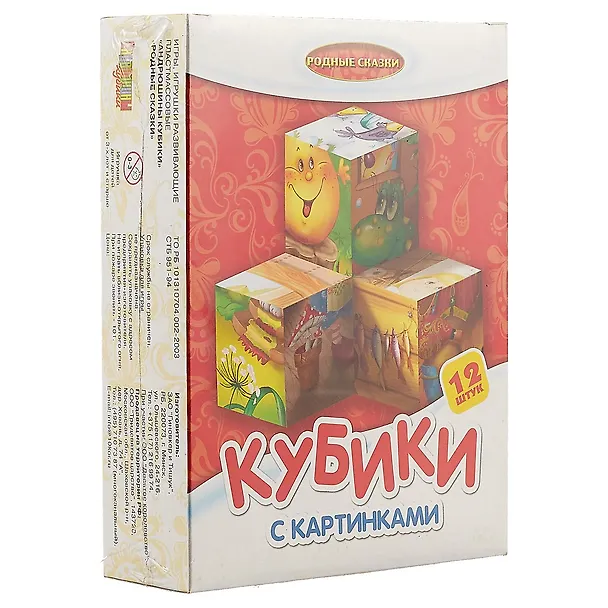 Картинки на пластмассовых кубиках «Родные сказки»,нанесены методом прямой печати. Размер кубиков - 4 см Количество кубиков - 12 шт Количество собираемых картинок - 6 Предназначены для детей от 3-х лет
