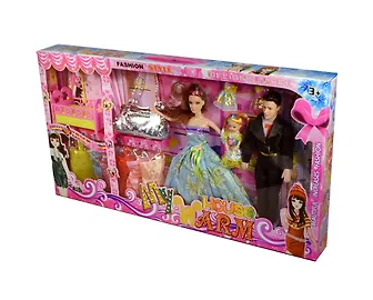 Куклы семья 3 шт (815A-1) (B974937) (9 платьев и аксессуары) (коробка)