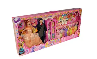 Куклы семья 3 шт (8899C) (B970364) (19 платьев мебель и аксессуары) (коробка)