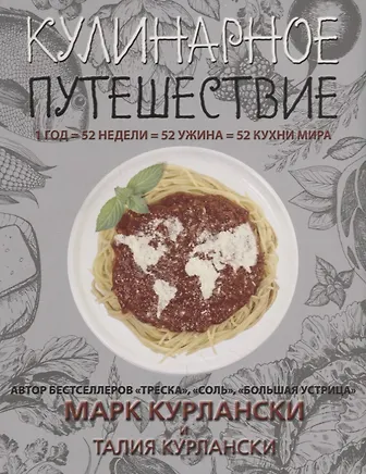 Все началось с игры. Известный писатель и журналист Марк Курлански крутил глобус, в который его школьница-дочь Талия наугад тыкала пальцем. Выбранная ее пальцем страна становилась темой очередного пятничного ужина. Так на свет появился сборник зарисовок о национальных кухнях 52 регионов мира - по числу пятниц в году.