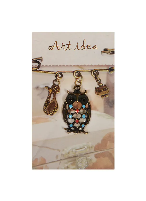 Кулон бронзового цвета Сова с голубой и красной эмалью (QA-5295-1) (3,3см)