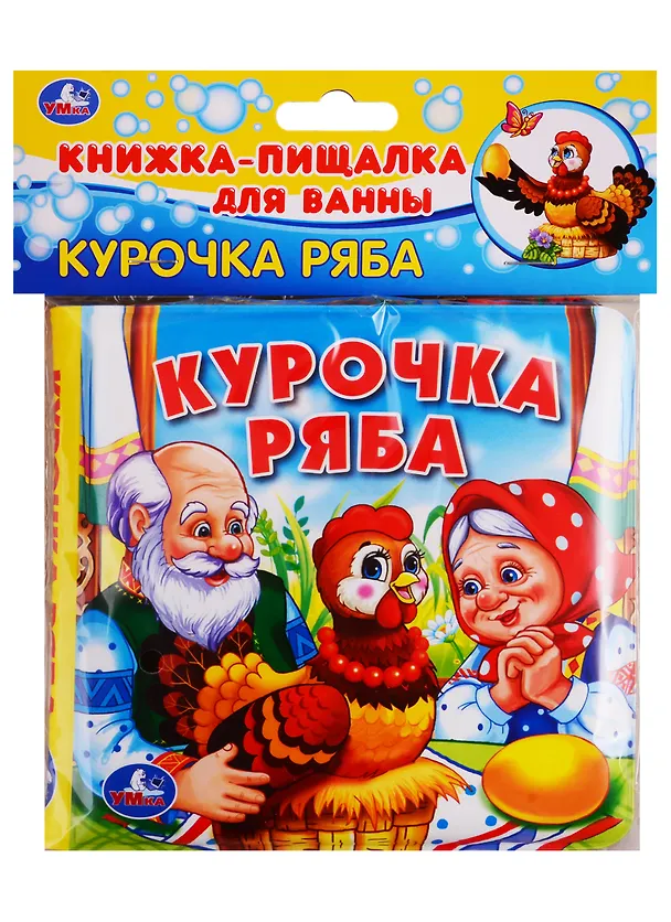 Книжка поможет развлечь малыша во время купания. Она содержит сказку о курочке Рябе и яркие красочные иллюстрации, которые привлекут внимание ребенка. Непромокаемые страницы выполнены из безопасных экологически чистых материалов, благодаря чему ее можно брать с собой в ванную комнату и читать во время купания. Если нажать на страничку, то книжка запищит. Такая книжка-пищалка порадует ребенка и поможет разнообразить купание.