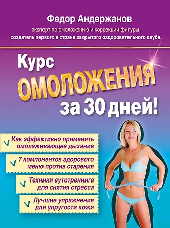 Молодость и красота – вопросы, которые волнуют каждую женщину. В последнее время многие женщины начиная с тридцати лет испытывают дискомфорт, который связан с возрастными изменениями. Федор Борисович Андержанов, собрав лучшее из современной и восточной медицины, разработал совершенную систему, в основе которой лежит комплексный подход к вопросу омоложения и коррекции фигуры. Это уникальный аутотренинг для снятия стресса, специальная, очень простая, дыхательная гимнастика, разумное количество физической нагрузки и рациональное питание. В своей книге автор доступно излагает обоснование своей системы, дает практические рекомендации и советы, схемы питания и комплексы упражнений, выполнение кото