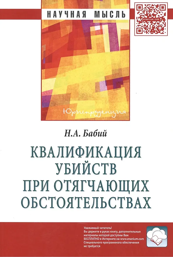 Книга является научным исследованием квалификации убийств с основным и квалифицированным составами по законодательству Республики Беларусь и Российской Федерации. Центральное место отводится решению наиболее проблемных вопросов квалификации в целях совершенствования уголовного законодательства и практики его применения. Основу для анализа составили судебная практика и научные труды российских и белорусских учёных.