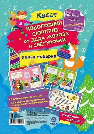 Квест "Новогодний сюрприз от Деда Мороза и Снегурочки". Веселые задания с наклейками