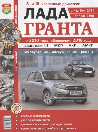Иллюстрированное руководство содержит подробную информацию по вопросам повседневной эксплуатации, регулярного технического обслуживания и текущего ремонта автомобилей Лада Гранта (2190, 2191) с 8- и 16-кл. двигателями. Дано описание особенностей конструкции и ремонта различных модификаций.