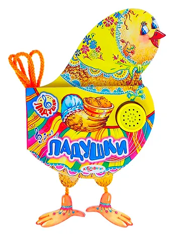 Купила эту забавную книгу в виде курочки сыну, т.к. Ладушки» - это у нас любимая потешка. Интересное оформление, хвостик из верёвки и болтающиеся ножки нравятся ребёнку. Сделана из плотного картона. Иллюстрации яркие и красивые. Книга содержит в себе известные русские стихи для малышей и одну песню в озвучке в звуковом модуле. Звук приятный, средней громкости. При нажатии можно включить и выключить песню.