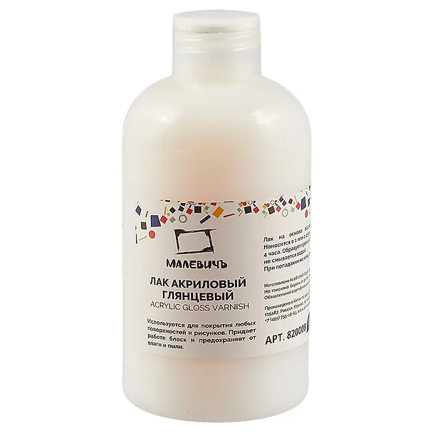 Глянцевый лак добавит вашей работе яркости, краски под ним будут блестеть. Наносить его нужно кистью с искусственными волосками или валиком. Лак высыхает за 4 часа.