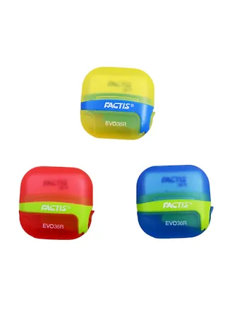 Точилка с ластиком EVO от Factis выручит, когда нужно быстро привести в порядок карандаш и аккуратно исправить помарки. Два инструмента в одном корпусе экономят место в пенале и помогают держать рабочее место аккуратным. Точилка удобно лежит в руке и подходит для повседневных школьных и офисных задач, а ластик мягко стирает карандашные линии без лишних разводов.