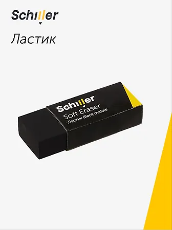 Ластик фирмы "Шиллер" чёрного цвета оказался среднего качества. Меня привлёк нестандартный чёрный цвет, средняя мягкость, оптимальный размер и хорошая рекомендация продавца-консультанта в магазине.