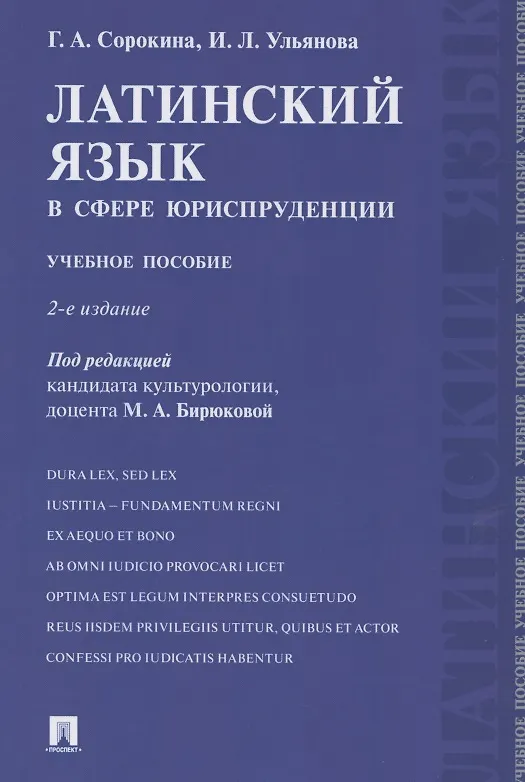 «Латинский язык в сфере юриспруденции». Учебное пособие построено в соответствии с современными требованиями методики преподавания латинского языка. Оно содержит необходимый грамматический материал и упражнения, список латинских юридических терминов и выражений, а также юридические тексты, основанные на различных латинских источниках. Учебное пособие дает возможность освоить базовый курс латинского языка, необходимый каждому юристу.