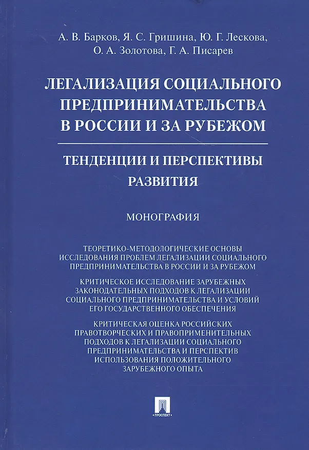 Легализация социального предпринимательства в России и за рубежом. Тенденции и перспективы развития. Монография