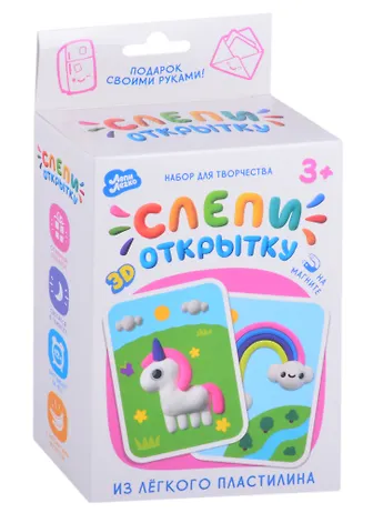 Набор для создания 3D открытки из легкого пластилина, с магнитом в комплекте. Легкий пластилин ТМ Лепи легко невероятно воздушный на ощупь! Так легко лепить еще никогда не было: создай и подари самую милую открытку! Внимание - белый легкий пластилин светится в темноте!