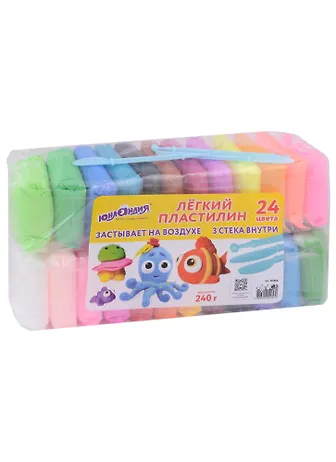 Набор состоит из супер лёгкий воздушного пластилина высокого качества ярких цветов и стеков, вносящих разнообразие в игры с лепкой. 24 цвета позволят ребенку создать действительно уникальную поделку, миниатюрную скульптуру или картину.