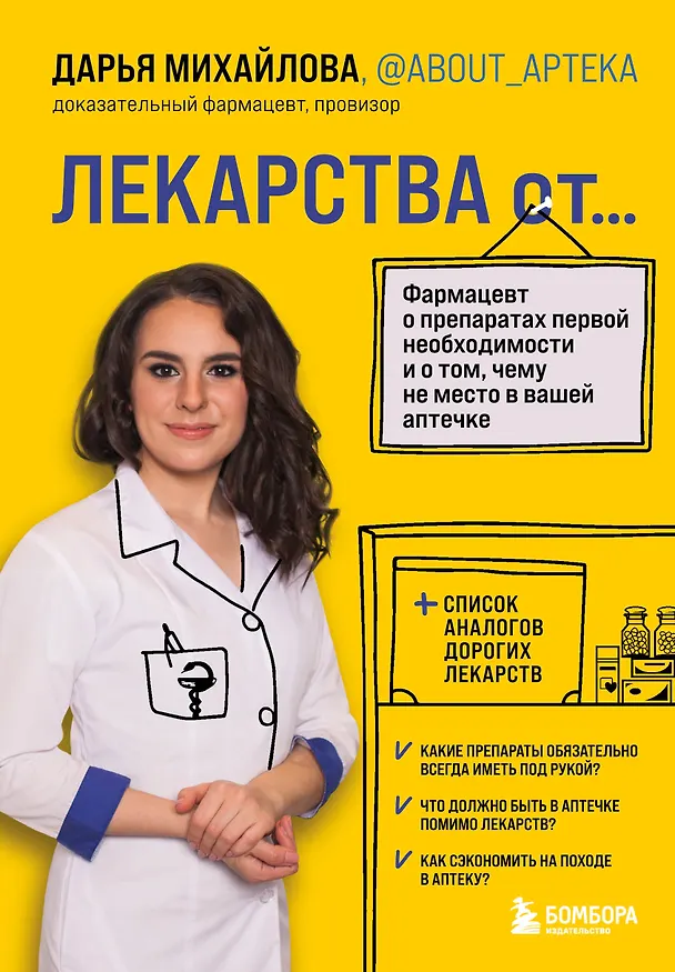 Перед вами первый гид по миру лекарств, составленный опытным доказательным фармацевтом и автором популярного блога about_apteka — Дарьей Михайловой. Ее цель — вооружить вас такой информацией, чтобы каждый поход к врачу или в аптеку, а также самостоятельный подбор безрецептурных лекарств, проходил легко и без побочных эффектов.