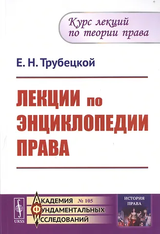 Вниманию читателей предлагается книга выдающегося русского философа, правоведа Е. Н. Трубецкого (1863-1920), содержащая лекции по энциклопедии права - отрасли юридической науки, существовавшей в дореволюционной России и сводившейся к краткому очерку развития всех юридических наук. В книге раскрываются основные понятия и категории права и государства; рассматриваются такие вопросы, как право и нравственность, естественное право, происхождение права, применение правовых норм, действие законов, правоспособность и дееспособность физических лиц, условия существования юридического лица и виды юридических лиц, объекты и субъекты права, классификация юридических отношений и т. д.; дается общее понят