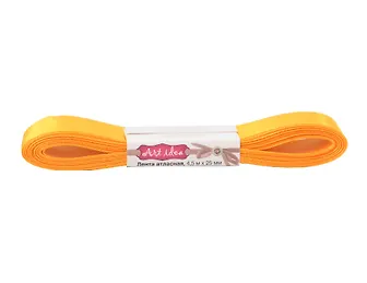 Атласная лента шириной 1 дюйм (25 мм) и длиной 4,5 м тёмно-жёлтого цвета (артикул 3016) — это декоративный материал с гладкой, блестящей поверхностью, который используется для создания украшений, оформления подарков, рукоделия и других творческих задач.
