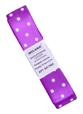 Атласная лента фиолетового цвета в горошек — универсальный акцент для ваших творческих проектов. Плотная, гладкая и блестящая, она подчёркивает каждый изгиб банта, держит форму, не мнётся и не тускнеет. Контрастный белый горошек добавляет игривости и стиля открыткам, подарочной упаковке, фотокнигам, букетам и элементам декора.